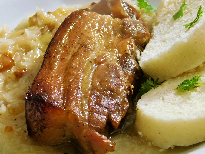 Gdy cała woda odparuje, zarumieni się od spodu. Po wyłączeniu dodajemy przegotowaną wodę, aby powstał dobry sok. Boczek można pokroić w plasterki i upiec już w porcjach. Można go wtedy wykorzystać do kapusty lub szpinaku z kluskami ziemniaczanymi.