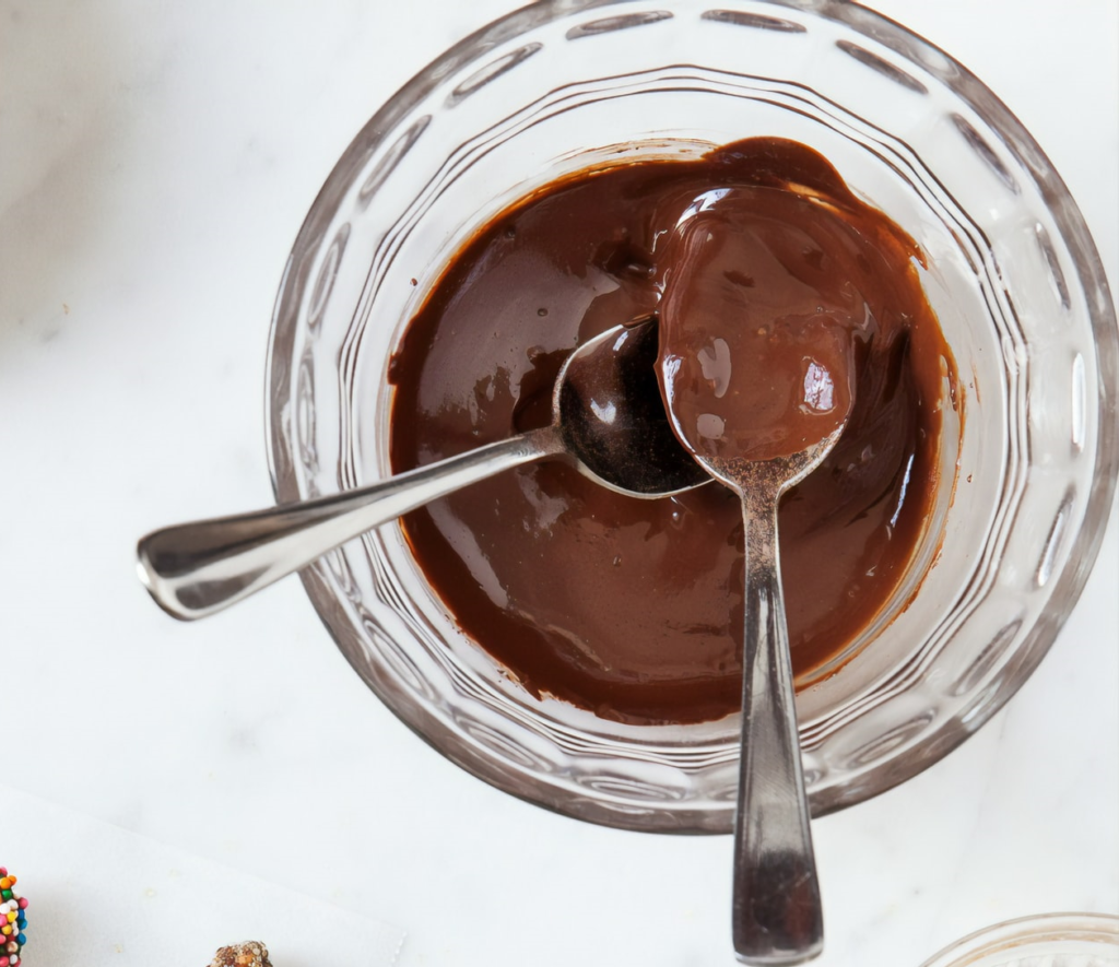 Gdy jest jeszcze gorący, rozsmaruj obficie dżem i pozwól mu ostygnąć. Podgrzej śmietankę do ubicia, aż będzie gorąca i dodaj połamaną czekoladę. Odstawić na chwilę, aż czekolada się rozpuści i wymieszać na gładką glazurę.
