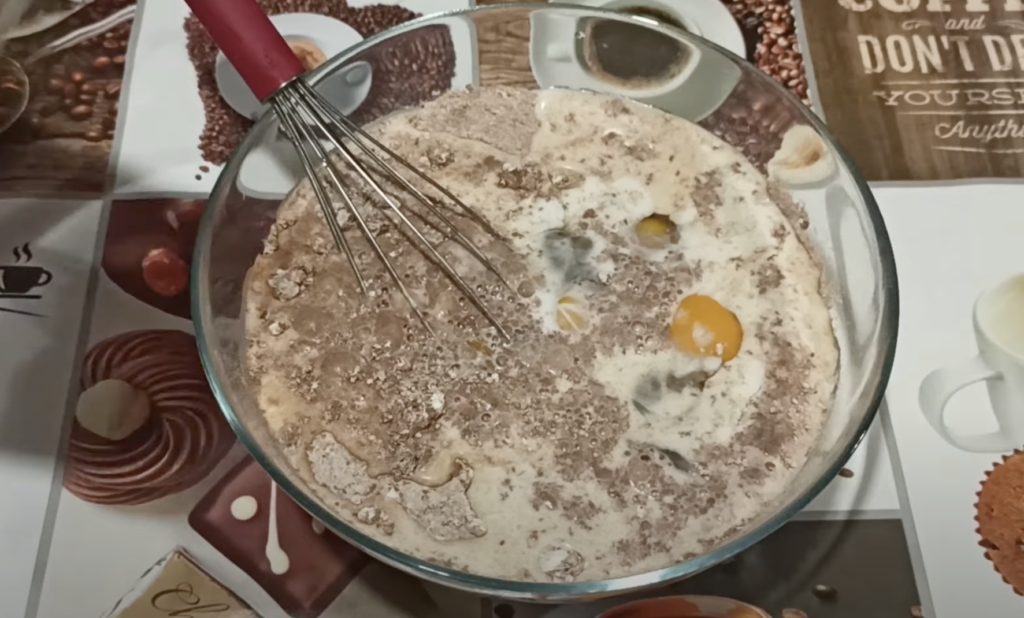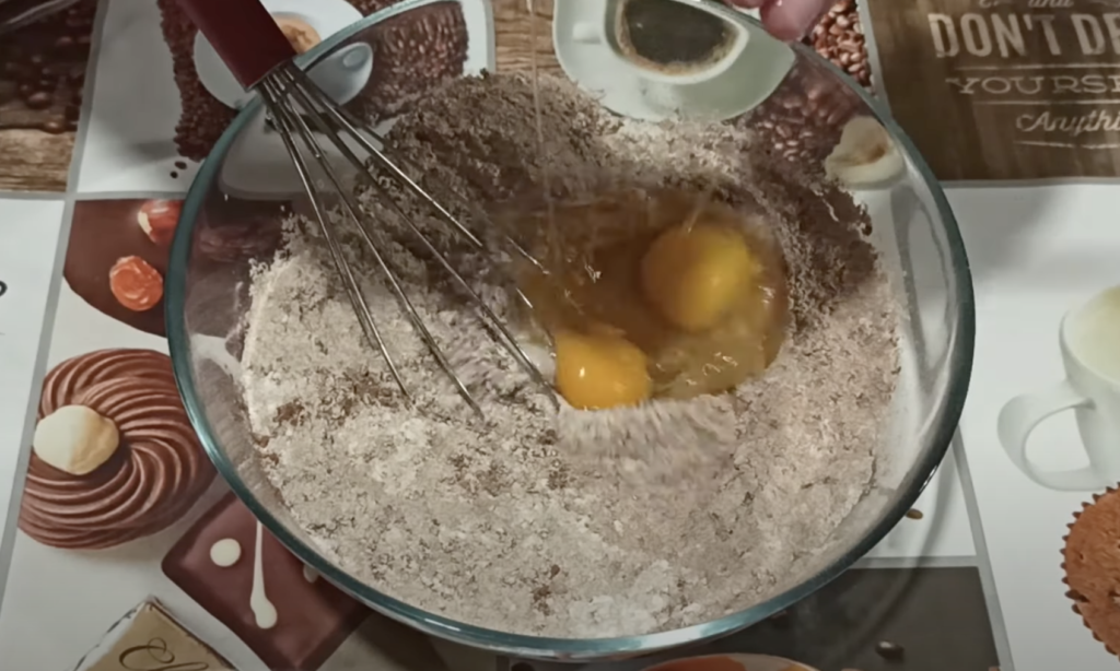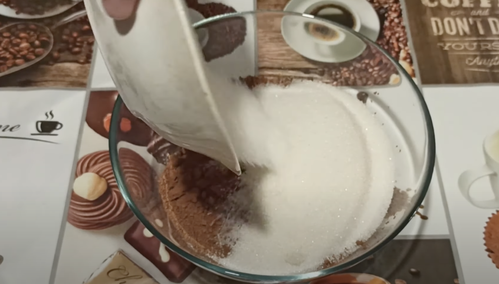 Przygotowanie ciasta jest bardzo proste. Przygotujemy miskę, w której mieszamy składniki sypkie – przesianą mąkę, kakao, cukier, proszek do pieczenia i wanilię.