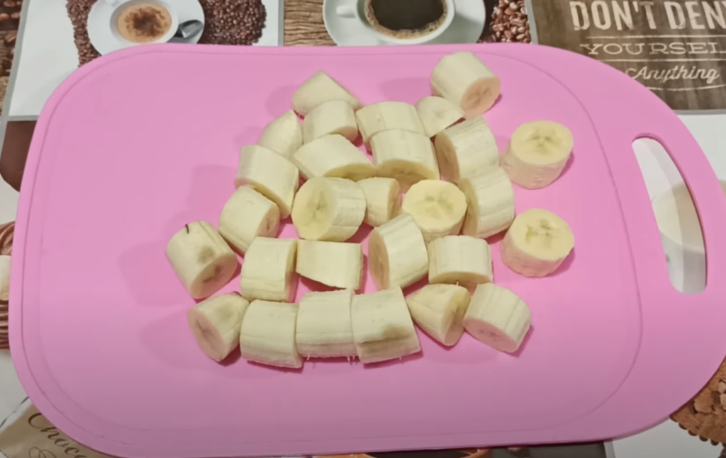 Najsmaczniejsze szybkie ciasto do kawy: Kroję 3 banany na blasze do pieczenia, zalewam ciasto i pieczę tak 3 razy w tygodniu.