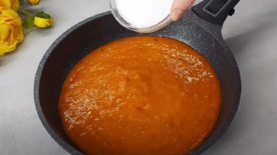 Na patelnię wrzucamy zmiksowane morele i mieszamy z cukrem. Doprowadzić mieszaninę do wrzenia na patelni. W drugiej misce wymieszaj skrobię kukurydzianą z wodą i wymieszaj ją z morelami. Następnie wlać mieszaninę do miski i wymieszać z miękkim masłem.