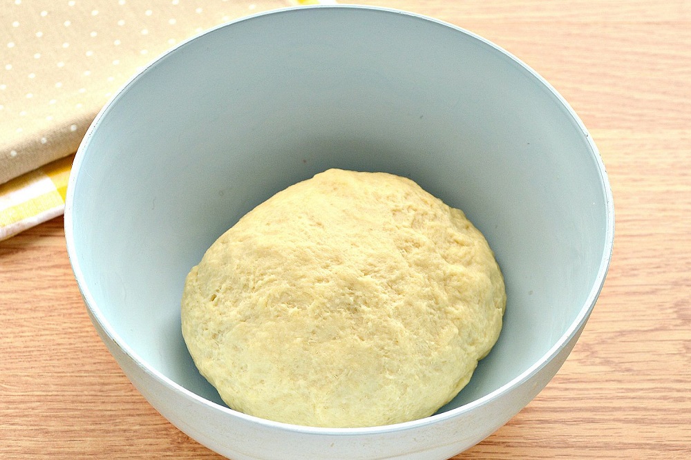 W drugiej misce umieścić należy resztę przesianej mąki wymieszanej z cukrem, solą oraz olejem. Do tak przygotowanego ciasta powoli, stopniowo dodajemy drożdże mieszając aż do uzyskania jednolitej, gładkiej konsystencji. Teraz tą miskę zakrywamy, po czym odstawiamy w ciepłe miejsce na około pół godziny.