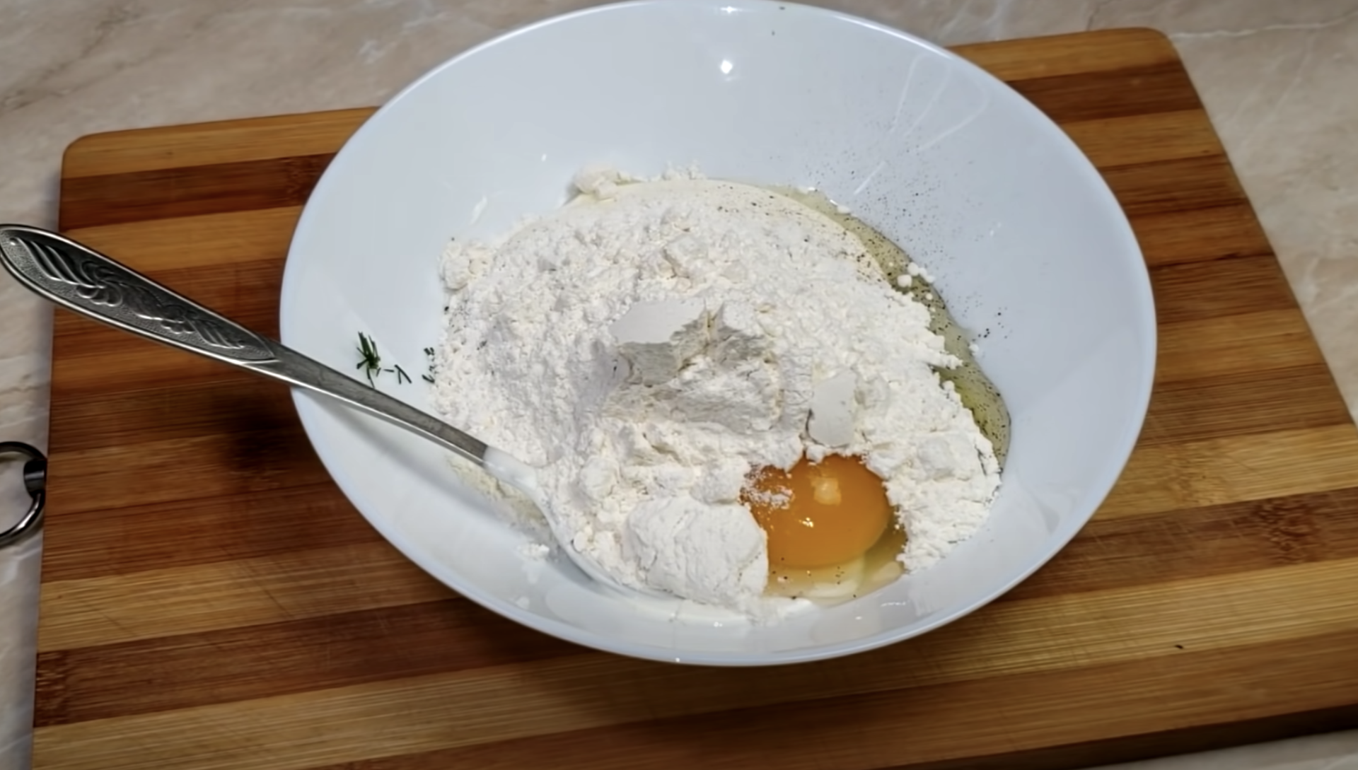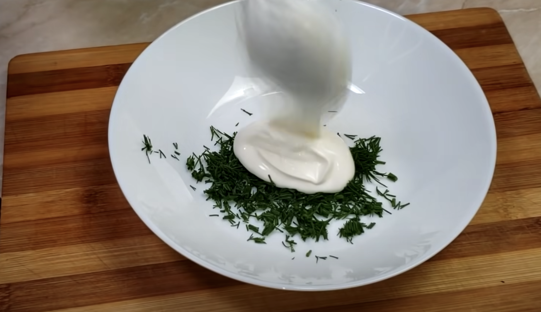 Teraz przygotuj ciasto do obtoczenia warzywa. Drobno posiekaj koperek i wymieszaj ze śmietaną.