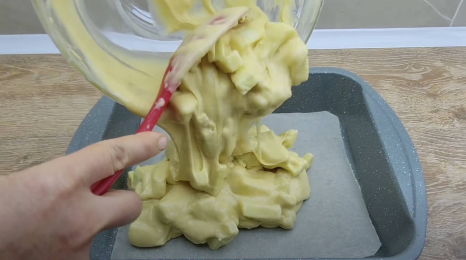 Ciasto przełóż na blachę. Delikatnie rozprowadź je tak, aby równomiernie pokryło całą blachę.