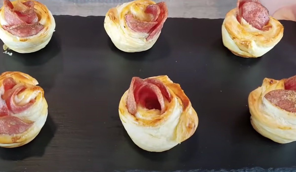 Umieść róże w silikonowej mini foremce do babeczek i posmaruj je mieszanką żółtka i mleka. Piecz w piekarniku nagrzanym do 180 stopni przez 20 minut. Te oryginalne przekąski z gorącego ciasta francuskiego doskonale łączą w sobie atrakcyjną prezentację i wykwintny smak. Uwierz mi, goście będą zachwyceni.