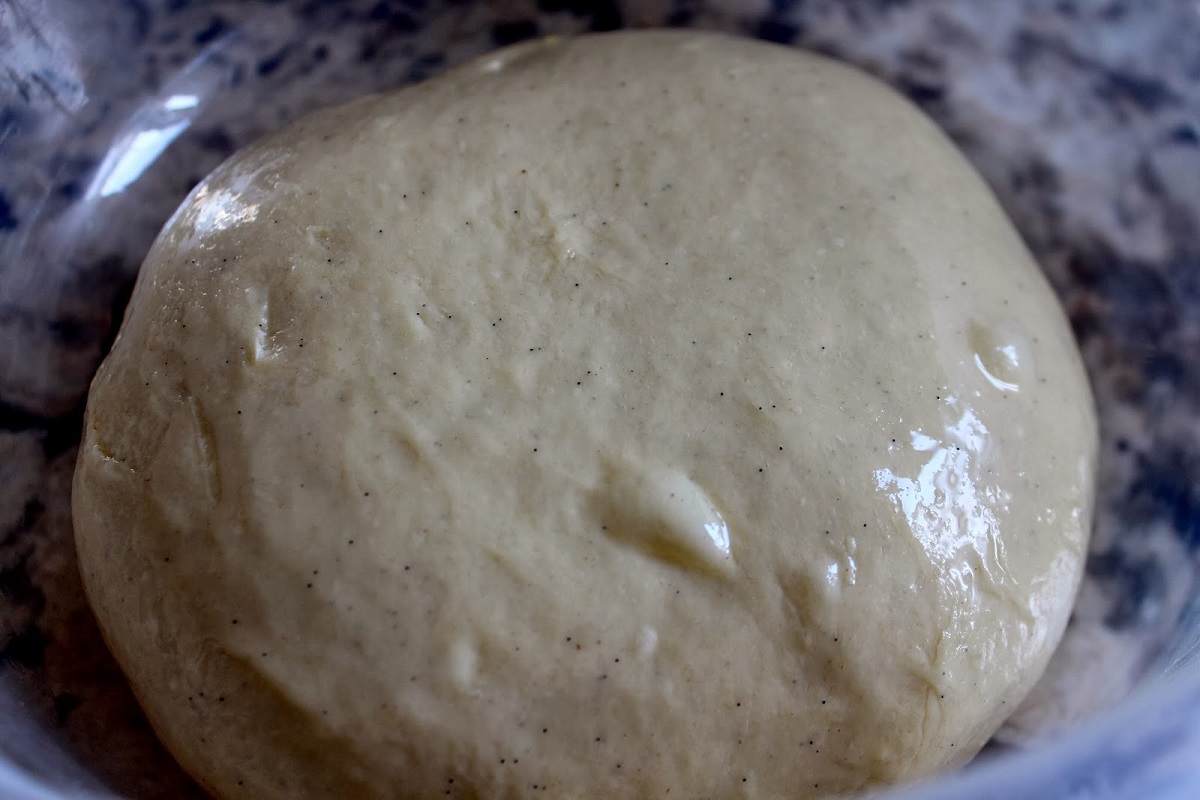 W razie gdyby okazało się, że w cieście są grudki, dodajemy kolejne 20 ml oleju roślinnego. Ciasto wyrabiamy przez około 10 minut – idealnie, jeżeli jest miękkie oraz delikatnie przylepia się do stołu. Gdy ciasto jest już właściwie zagniecione, przekładamy je do miski, przykrywamy folią spożywczą oraz zostawiamy na mniej więcej 40 minut w ciepłym miejscu.