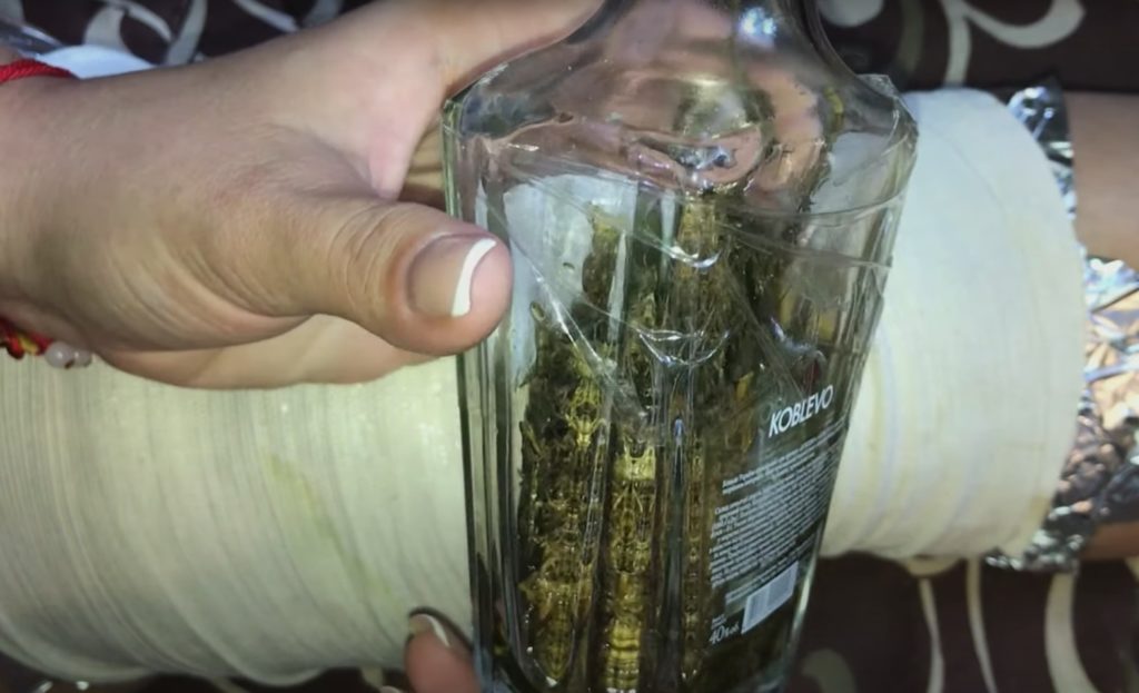 Z łopianu przygotowujemy domową nalewkę, z której będziemy robić okłady. Świeży łopian zamykamy w szklanej butelce, którą napełniamy alkoholem. Chowamy butelkę w ciemnym miejscu na 10 dni.