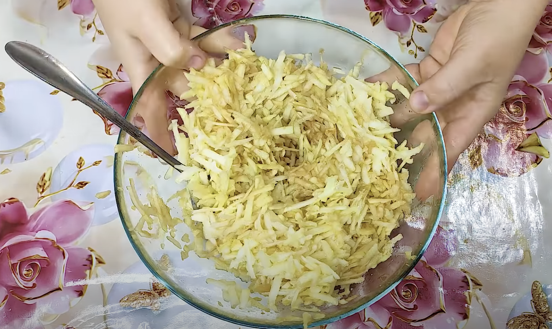Na tarce zetrzyj jabłka. Dodaj do nich cukier, sok z cytryny i odrobinę cynamonu do smaku.