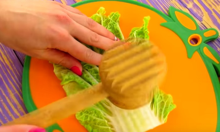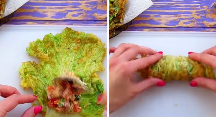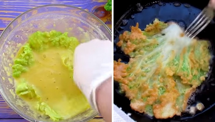 Każdy liść kapusty zanurz w cieście, a następnie usmaż z obu stron na rozgrzanym oleju. Ciasto powinno być złociste.