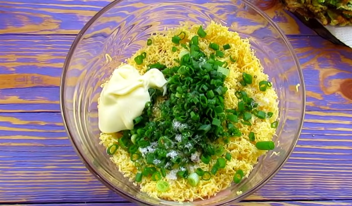 Gotowe liście odkładaj na talerz wyłożony ręcznikiem papierowym, aby odsączyć nadmiar tłuszczu. Pomidory i szynkę pokrój w drobną kostkę, a ser zetrzyj na tarce o małych oczkach. Wymieszaj wszystko, dodając odpowiednią ilość szczypiorku, soli i pieprzu.