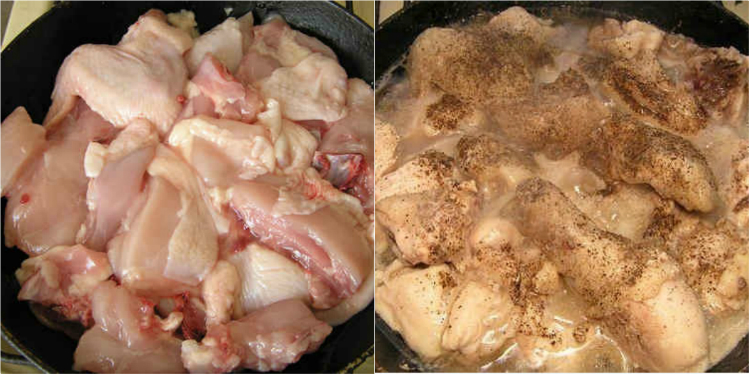 Przykryj patelnię pokrywką i duś kurczaka na małym ogniu w soku własnym, przez około 35-45 minut. Posól i popierz go dla lepszego smaku.