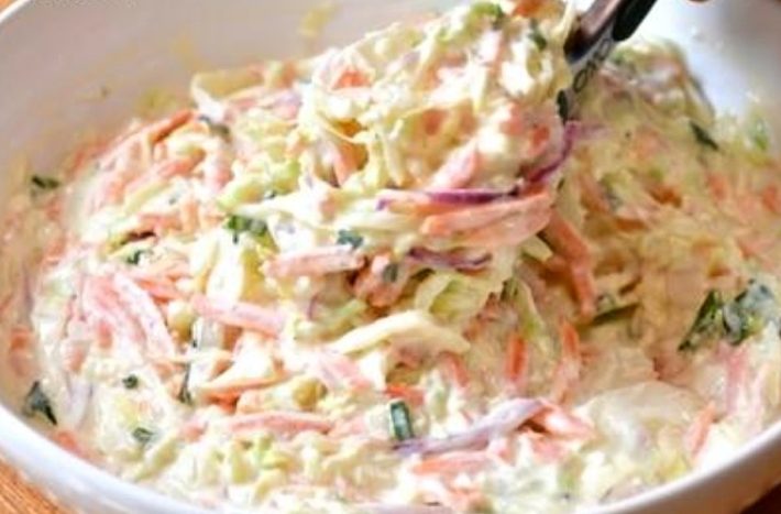 Jeśli lubisz sałatkę coleslaw, zrób taką z marchewką, cebulą i sosem jogurtowym. Będzie lżejsza i zdrowsza niż gdybyś użył majonezu.