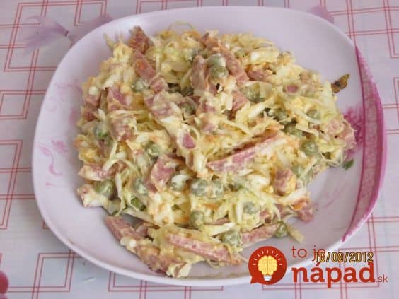 Posiekaj wszystkie składniki (oprócz groszku), wymieszaj w misce i podawaj. Na koniec wymieszaj majonez, cukier i sos solny. worcester, ocet i musztarda.
