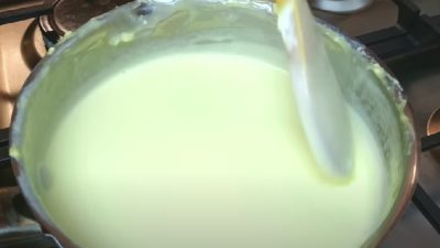 Umieść wszystko w rondlu ze stali nierdzewnej i zacznij podgrzewać na kuchence na małym ogniu. Stale mieszaj, aby mieszanina się nie paliła. W międzyczasie twaróg zacznie się topić. Po stopieniu dodać masło i dalej podgrzewać i mieszać. Gdy mieszanina zacznie się gotować, wyłącz kuchenkę.