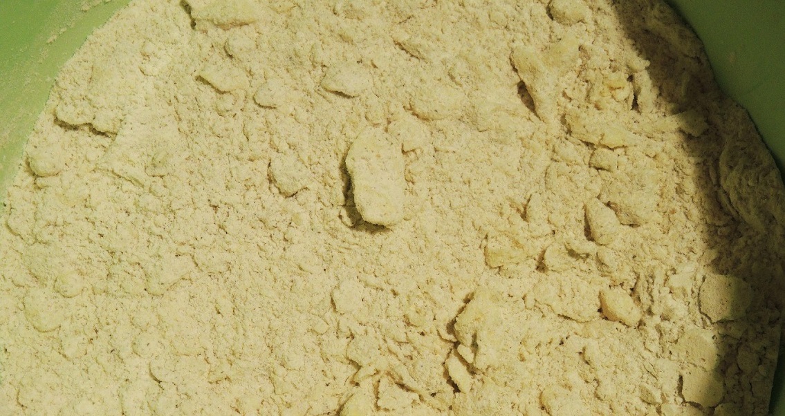 Weź dużą miskę i przesiej do niej mąkę. Dodaj także proszek do pieczenia oraz masło pokrojone w drobną kostkę. Wszystko dokładnie wymieszaj.