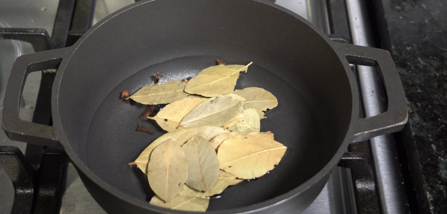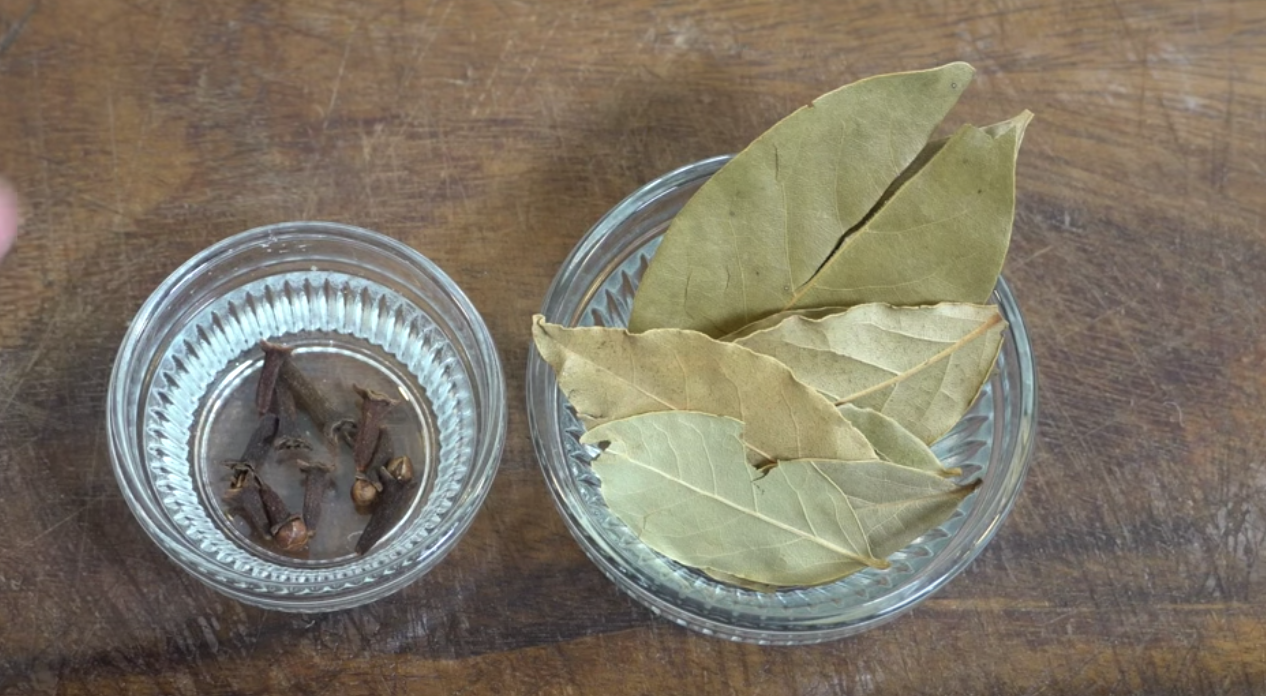Zagotuj wodę w garnku. Dodaj do niej goździki oraz liść laurowy i doprowadź powstałą mieszaninę do wrzenia. Gotuj ją następnie przez 10 minut.