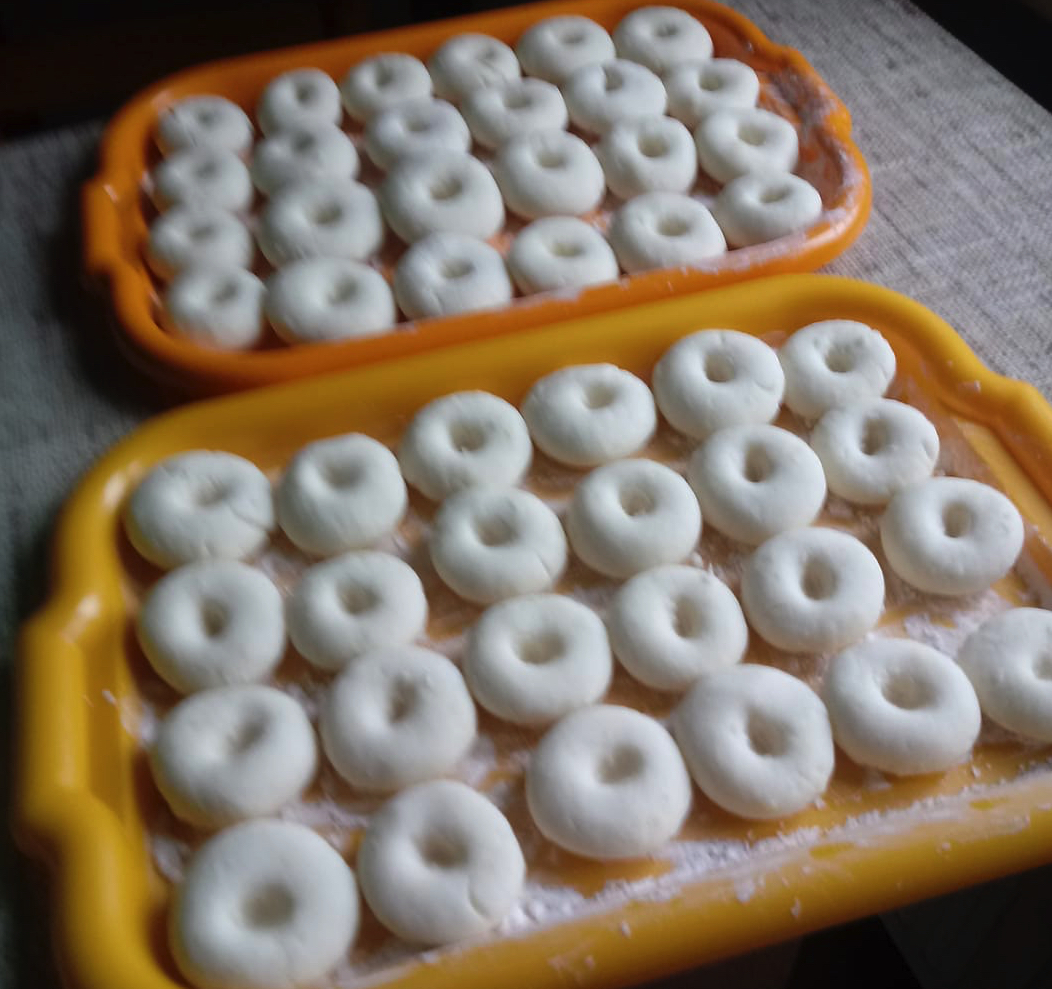 Z gotowej masy odrywaj po kawałku i twórz kuleczki wielkości orzecha włoskiego. W każdej kuleczce zrób dziurkę, poprzez naciśnięcie jej na środku palcem. Uformowane kuleczki z dziurką wrzuć do gotującej się, osolonej wody. Mieszaj co jakiś czas, aby nie przykleiły się do dna. Gdy wypłyną na powierzchnię, gotuj jeszcze przez 2 minuty.