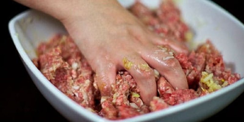 Zaleca się, aby mieszać mięso nawet około 10 minut, ponieważ musi powstać z niego lepka konsystencja. Wlewać stopniowo wodę, żeby farsz nie kleił się do rąk podczas przygotowywania posiłku.