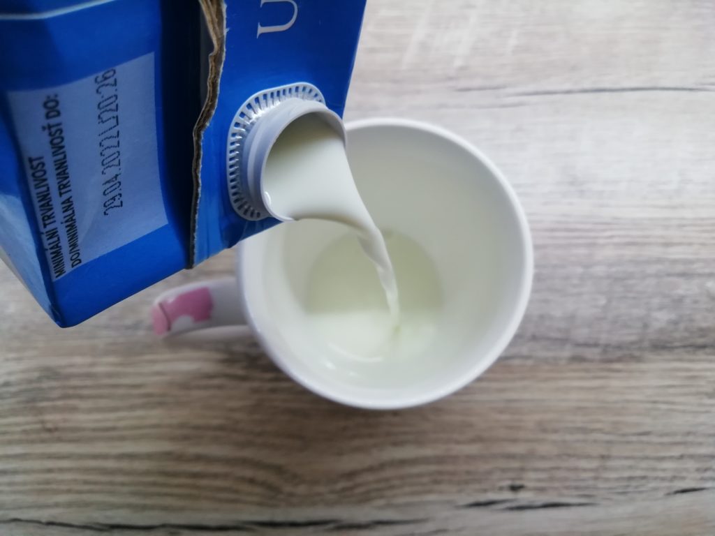 W misce połącz olej i mleko. W misce wymieszaj ze sobą mleko i olej. Następnie dodaj część ciasta do miski. Połącz delikatnie.