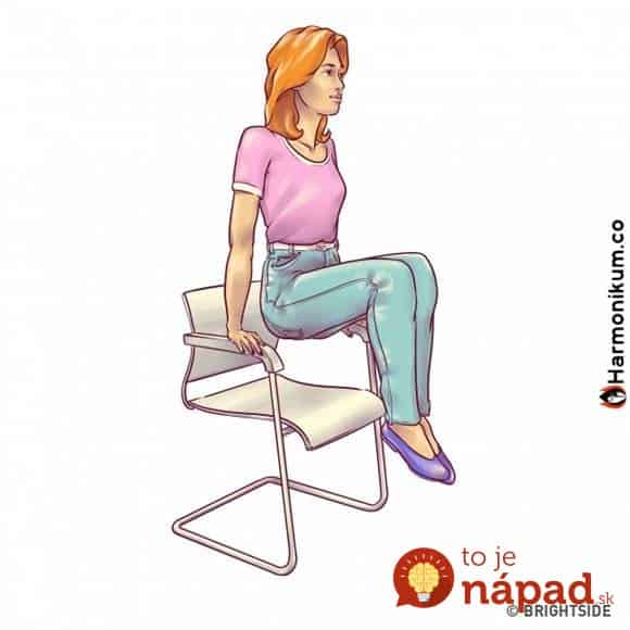 To ćwiczenie skupia się na wzmocnieniu mięśni brzucha i nóg, a jednocześnie minimalizuje obciążenie kręgosłupa. Aby je wykonać, usiądź na krawędzi krzesła i złap oparcie rękoma. Następnie unieś obie nogi razem do klatki piersiowej, trzymając je razem bez rozkładania. Powtórz ten ruch od 20 do 30 razy, aby poczuć skutki tego ćwiczenia.