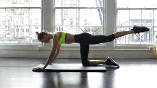 To ćwiczenie będzie oddziaływać na mięśnie kręgosłupa, nóg i rąk. Teraz połóż się na plecach i unieś prawą nogę pod kątem. Następnie unieś miednicę 20 razy. Powtórz ćwiczenie z lewą nogą.