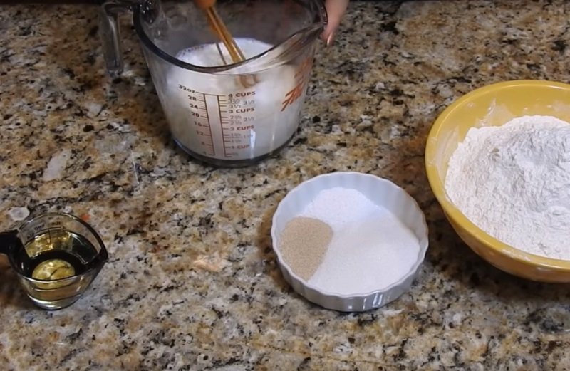 Do osobnej miski wsyp cukier, sól, mąkę i drożdże i wymieszaj je razem. Jeżeli robisz ciasto na słodko, możesz dodać wanilię.