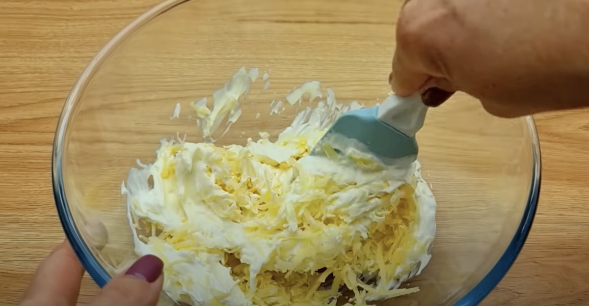 W misce wymieszaj śmietanę, jogurt, starty ser. Karkówkę ułóż na warzywach i posmaruj śmietaną.